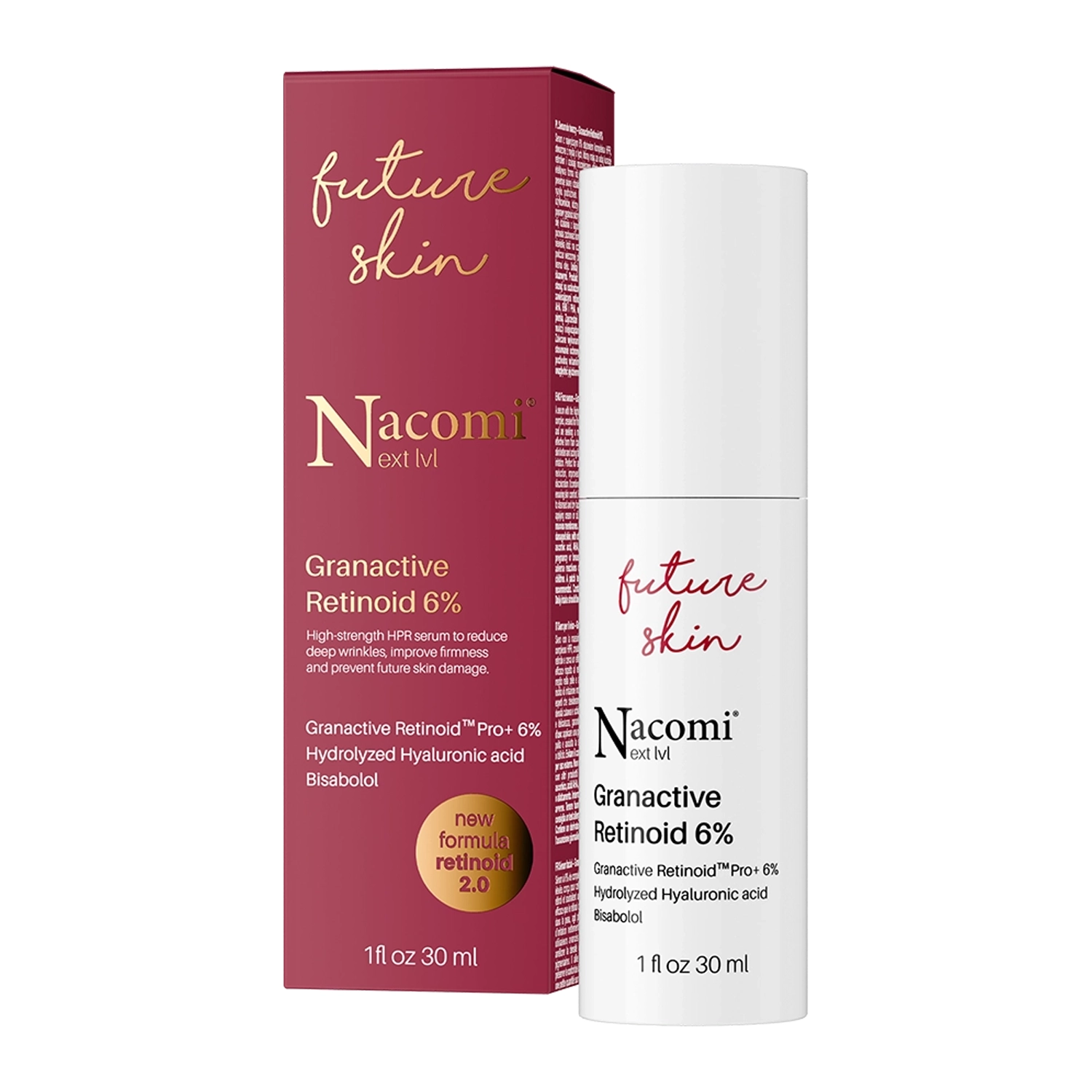 - Granactive Retinoid-Komplex 6% – ein Komplex, der einen Ester der Retinsäure enthält, also ein Retinoid der neuen Generation, bietet hohe Wirksamkeit bei geringerem Risiko von Reizungen, reduziert Unvollkommenheiten, glättet, regt die Haut zur Erneuerung an, reduziert die Sichtbarkeit von Verfärbungen und Falten,
