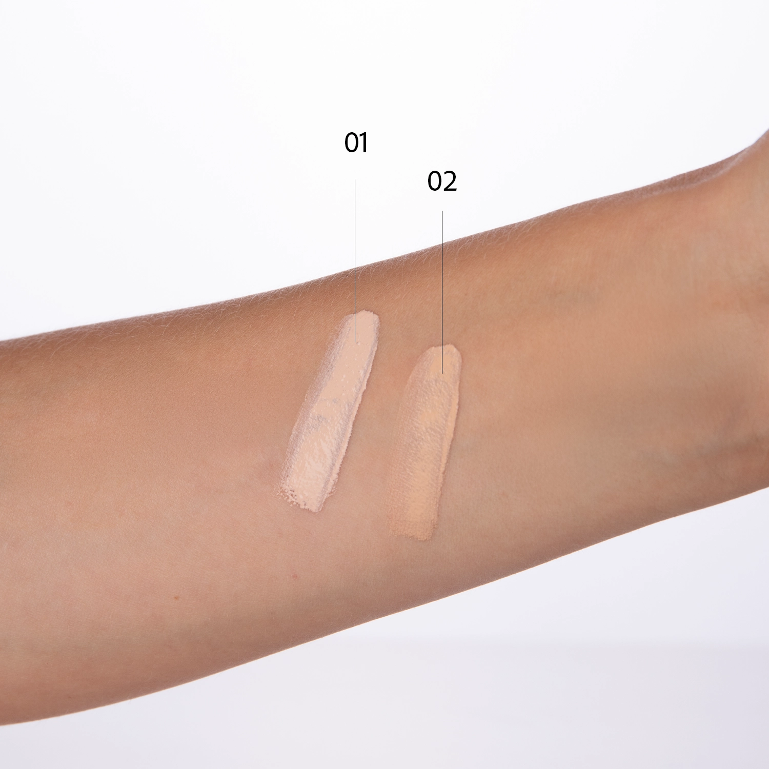 Anwendung: Die Foundation mit dem Applikator auf dem Gesicht verteilen. Bei Bedarf eine weitere Schicht auftragen.