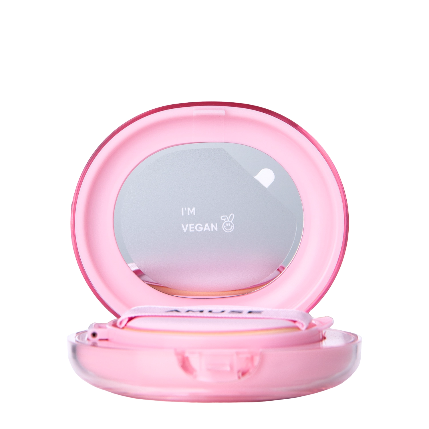 Amuse - Dew Power Vegan Cushion - 03 Honey - eine kissenförmige Foundation mit einem leuchtenden Finish. Sie ist lang anhaltend und verleiht der Haut ein frisches Aussehen. Sie hat eine glättende Formel, die das Erscheinungsbild vergrößerter Poren reduziert und für einen gesunden Teint sorgt. Sie hat eine leichte, feuchtigkeitsspendende Textur. Sie enthält gemischte Sonnenschutzmittel, die die Haut mit LSF 50+ PA++++ vor UV-Strahlen schützen. Der Zusatz von Wasserminzextrakt wirkt angenehm kühlend und erfrischend, während Niacinamid antioxidativ und aufhellend wirkt. Die Produktformel ist vegan.