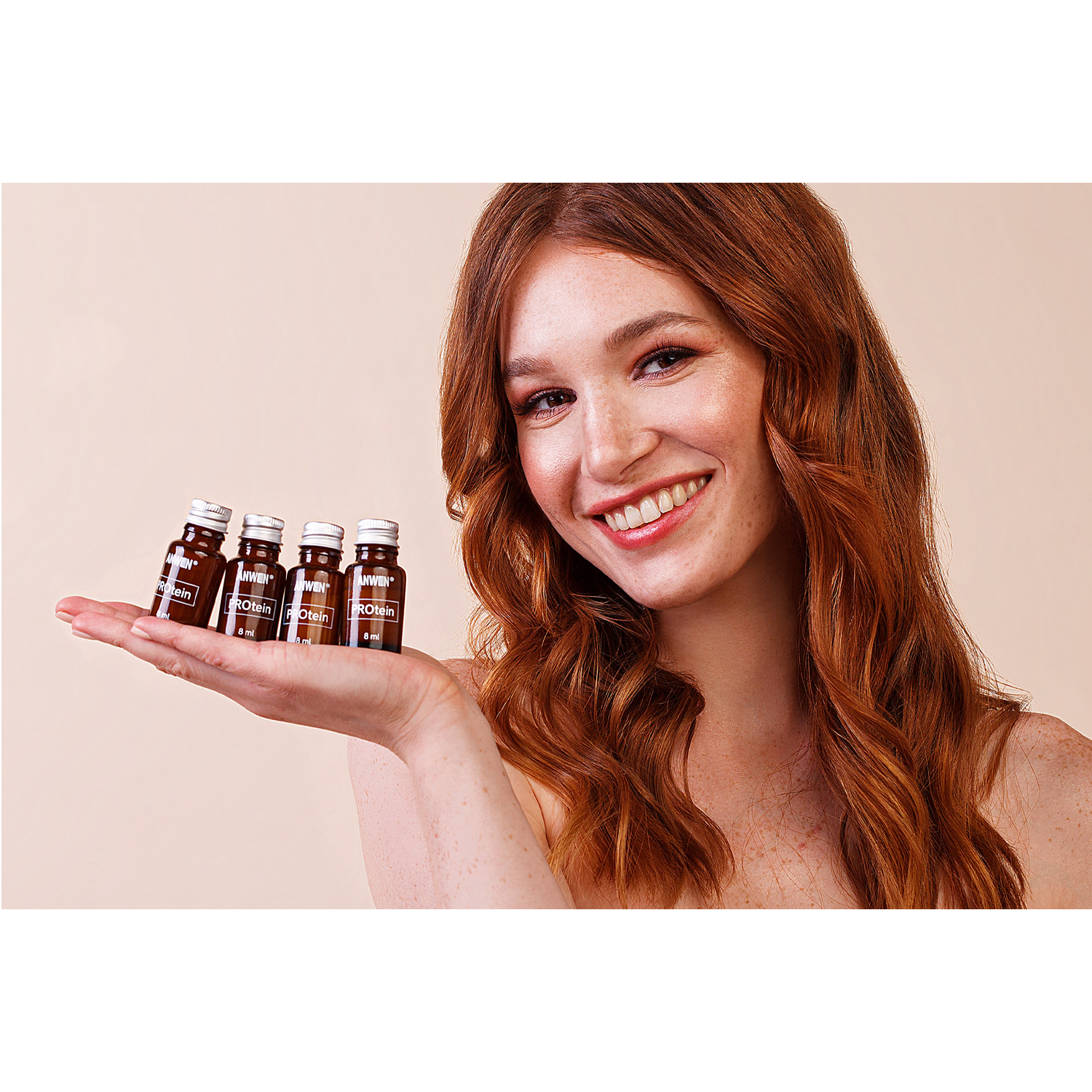 Anwendung: Auf das gewaschene, trockene Haar nach Belieben auftragen. Methode I: Den Inhalt der Ampulle einkämmen, eine Duschhaube aufsetzen und erwärmen. Nach 30 Minuten ausspülen und eine weichmachende Spülung auftragen. Methode II: Die Ampulle mit einer Maske vermischen und ca. 30 Minuten einwirken lassen. Methode III: Verwenden Sie die Ampulle als Grundlage für Öl, lassen Sie sie mindestens 30 Minuten einwirken und waschen Sie sie dann mit Shampoo aus. Methode IV: Kämmen Sie die Ampulle in das gewaschene Haar ein, trocknen Sie es zu 80%, spülen Sie es nach 30 Minuten aus und verwenden Sie eine Spülung. Nicht öfter als einmal alle 2–4 Wochen anwenden. Vor Gebrauch schütteln.