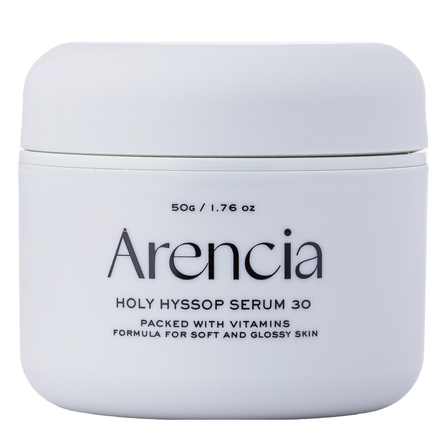Arencia - Holy Hyssop Serum 30 – ein Serum für die tägliche Pflege von Gesichtshaut, die intensive und tiefgehende Feuchtigkeit benötigt. Das in der Formel enthaltene Niacinamid stärkt die Hydrolipidbarriere der Haut und hellt gleichzeitig Verfärbungen auf. Der Hyssop-Extrakt wirkt stark entzündungshemmend und beruhigt gereizte Haut. Gleichzeitig spendet Hyaluronsäure intensiv Feuchtigkeit, wodurch die Haut weich, glatt und strahlend wird. Dank der enthaltenen, stärksten Antioxidantien – Vitamin C und E – neutralisiert das Serum die schädlichen Auswirkungen freier Radikale und verlangsamt so den Alterungsprozess der Haut. Die Kosmetikformel wird durch Panthenol ergänzt, das nicht nur die Regeneration der Epidermis beschleunigt, sondern auch die feuchtigkeitsspendenden Eigenschaften des Serums verstärkt.