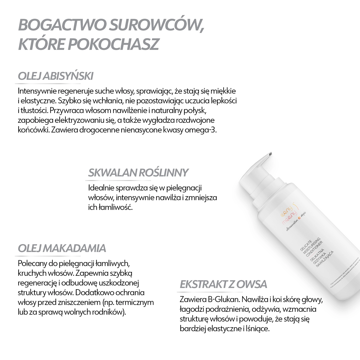 - Haferextrakt - stärkt die Haarstruktur, spendet Feuchtigkeit, verleiht Glanz,