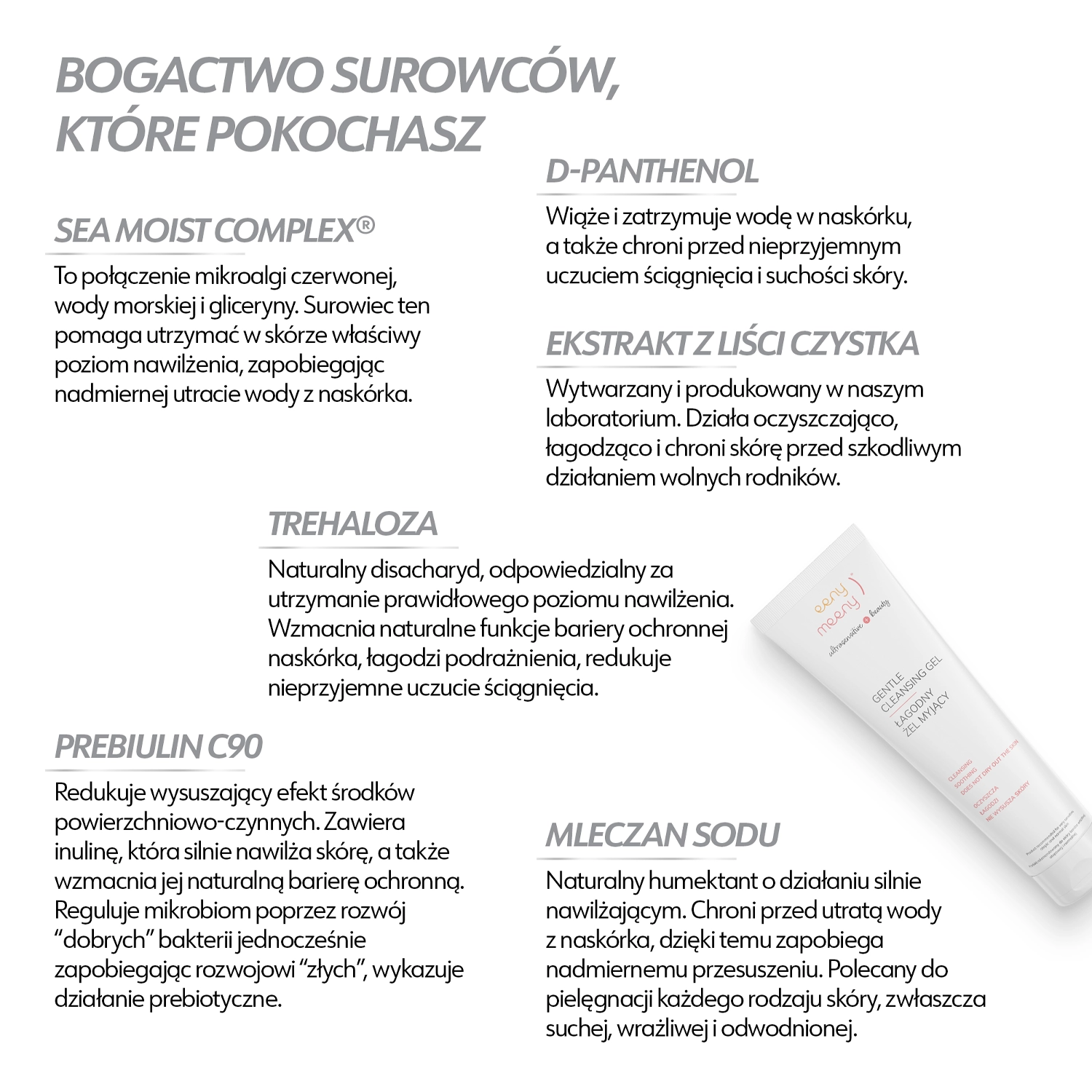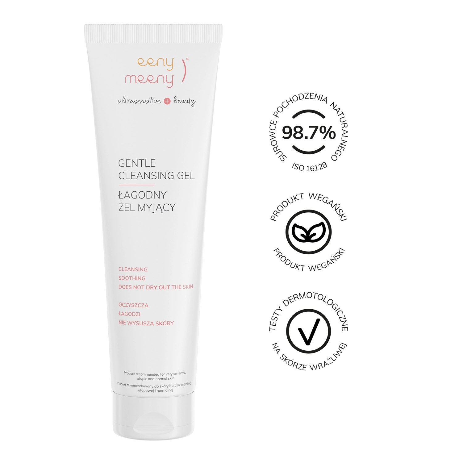 Eeny Meeny - Gentle Cleansing Gel - Gesichtsreinigungsgel mit zartem Duft, das milde Waschsubstanzen enthält, die die Haut nicht reizen. Sie wurde so zusammengestellt, dass es die Haut bei dem Waschen nicht zu sehr austrocknet und ist mit den Feuchtigkeitsspendern Trehalose und Inulin angereichert. Darüber hinaus wirkt Panthenol entzündungshemmend, während Zistrosenblatt-Extrakt und ein Hefefermentationsprodukt die Aufrechterhaltung eines angemessenen Mikrobioms auf der Haut unterstützen. Dadurch ist das Gel auch für zu Akne neigende Haut geeignet und unterstützt die Pflege zur Reduzierung von Hautunreinheiten. Es ist ideal für die morgendliche Gesichtsreinigung oder als zweiter Schritt einer zweistufigen Reinigung. Es enthält 98,7% Inhaltsstoffe natürlichen Ursprungs.