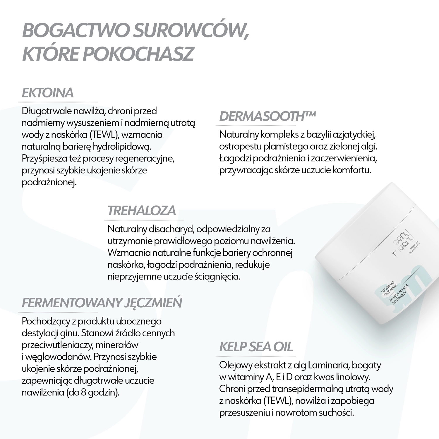 Eine Maske mit einer feuchtigkeitsspendenden und lindernder Formel