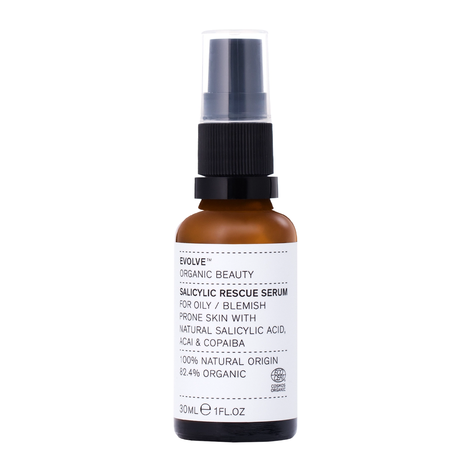 Evolve Organic Beauty - Rainforest Rescue Blemish Serum - ein Serum für problematische und zu Entzündungen neigende Haut. Es basiert auf Aloe-Vera-Saft, der feuchtigkeitsspendend und beruhigend wirkt. Weißer Weidenextrakt, eine Quelle von BHA-Säure, peelt die Haut sanft und reinigt die Talgdrüsenausgänge, wodurch Entzündungen verhindert werden. Die Copaiba-Lotion hat entzündungshemmende und antibakterielle Eigenschaften und reduziert die Talgdrüsenaktivität, wodurch die Talgabsonderung verringert wird. Das enthaltene Andiroba-Öl lindert Hautentzündungen und reduziert Rötungen, während Acai-Öl zusätzlich die Blutgefäßwände stärkt und die Funktion der Hydrolipidbarriere der Haut unterstützt. Das Serum reduziert effektiv Entzündungsprozesse der Haut, mildert Reizungen, beschleunigt die Hautregeneration und reguliert die Talgdrüsen. Das Kosmetikum wird aus Inhaltsstoffen natürlichen Ursprungs hergestellt, ist für Veganer geeignet und entspricht dem Gedanken der Abfallvermeidung.