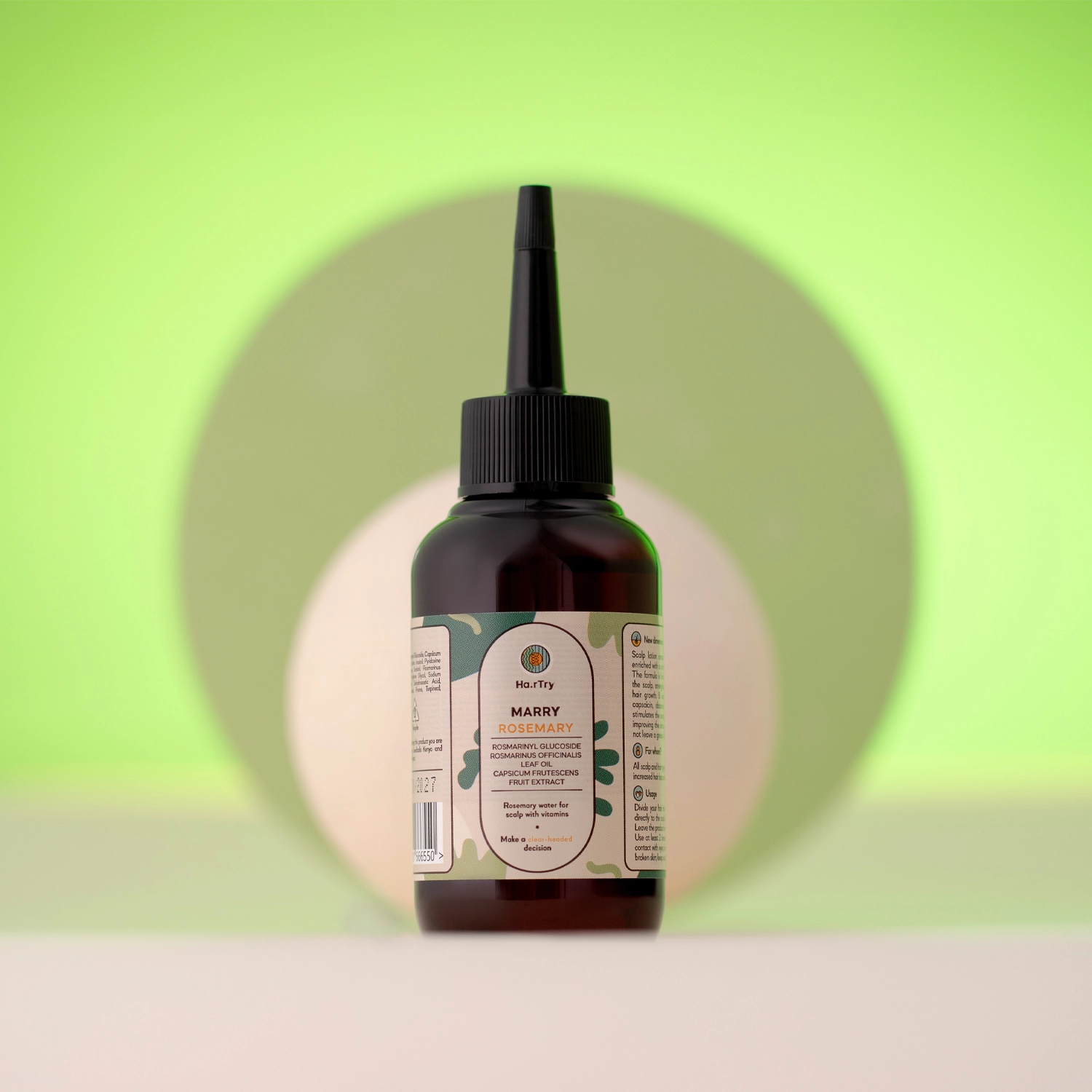HairTry - Marry Rosemary - eine Kopfhauteinreibung mit umfassenden Vorteilen für Kopfhaut und Haar. Dank Rosmarinöl und Capsaicin stimuliert das Produkt auf natürliche Weise die Mikrozirkulation im Haarfollikel und in der Haarzwiebel, was sich auf deren Ernährung und Sauerstoffversorgung auswirkt und ein besseres Wachstum sowohl von Babyhaar als auch von bereits vorhandenen Strähnen ermöglicht. Darüber hinaus bietet der B-Vitaminkomplex, der Niacinamid und Biotin enthält, eine multidimensionale Pflege für Kopfhaut und Haar. Er sorgt für die Regulierung der Talgsekretion, wodurch das Problem des fettigen Haares eingeschränkt wird, stärkt die epidermale Barriere, lindert und beruhigt Reizungen und minimiert unangenehmen Juckreiz der Kopfhaut. Die Zusammensetzung ist mit Rosmaringlucosid angereichert, das der Alterung der Kopfhaut entgegenwirkt, die Regeneration fördert und Haarausfall vorbeugt. Die Kombination aller Inhaltsstoffe ergibt eine leichte, nicht belastende Einreibung, die nach Kräutern und Rosmarin duftet und eine wärmende, das Haarwachstum anregende, talgregulierende, entzündungshemmende oder feuchtigkeitsspendende Wirkung hat. Das Produkt wird für geschwächtes Haar, Haar mit langsamem Wachstum, Reizungen und Juckreiz, fettiges oder dünnes Haar empfohlen. Die Formel ist in einer praktischen Applikatorflasche untergebracht und auch für Veganer und Vegetarier geeignet. Als Ausgleich für das eingeführte Plastik unterstützt die Marke HairTry Umweltinitiativen wie Seedballs Kenya und das ReSea Project, was das Produkt zu einer ethischeren Wahl macht.