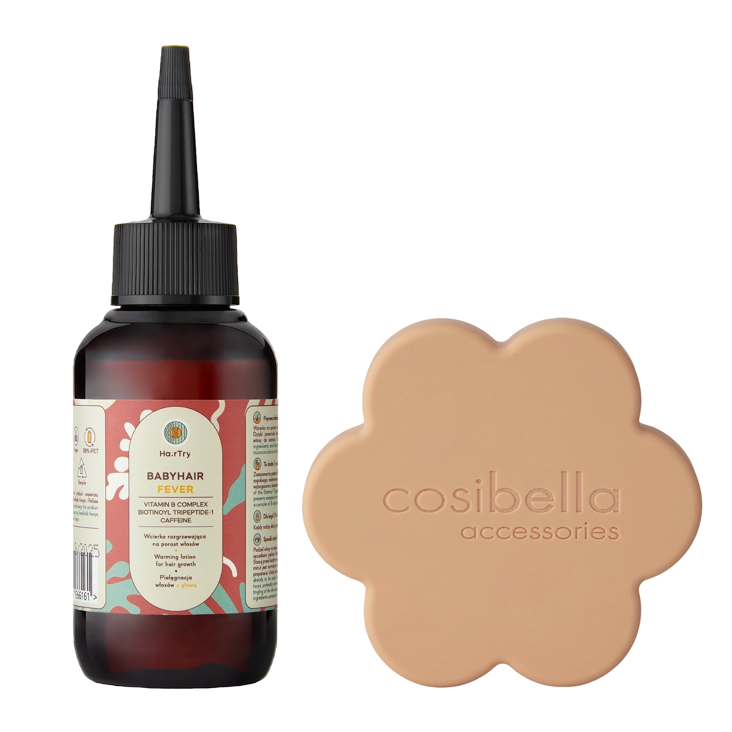 - Babyhair Fever – Einreibung für die Kopfhaut mit wärmender Wirkung, die das Wachstum von Babyhaaren stimuliert und übermäßigen Haarausfall reduziert. Die Anwendung eines Vitamin-B-Komplexes schützt Kapillaren, Epithelien und Haarfollikel und unterstützt die Regeneration des Gewebes. Es reguliert die normale Funktion des Hautstoffwechsels und wirkt so zusätzlich dem Haarausfall entgegen. Die Verwendung von Biotin-Tripeptid und Matrikine stärkt das Haar und verhindert effektiv dessen Ausfall. Es fördert das Haarwachstum und stimuliert die Kollagensynthese – ein Gewebebaustein, der für das gesunde Aussehen von Haut und Haar sorgt. Die Kombination aus Koffein und dem Inhaltsstoff – Vanillyl Butyl Ether – hat die Aufgabe, die Haarfollikel zu erwärmen, um das Wachstum anzuregen. Ein praktischer Dosierer ermöglicht eine präzise Verteilung der Einreibung, die dank ihrer wässrigen Formel alle Haarfollikel erreicht und deren leicht süßer Duft nicht reizend wirkt.
