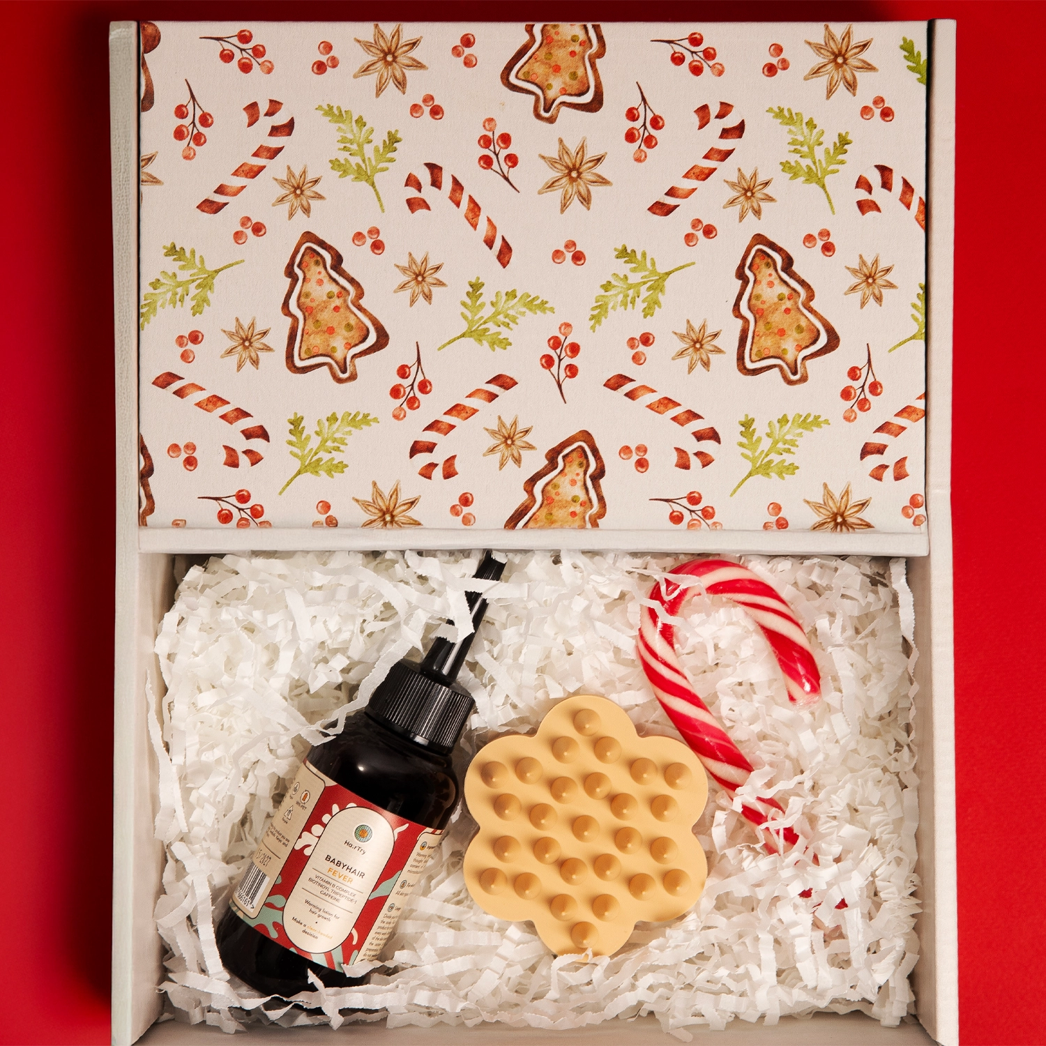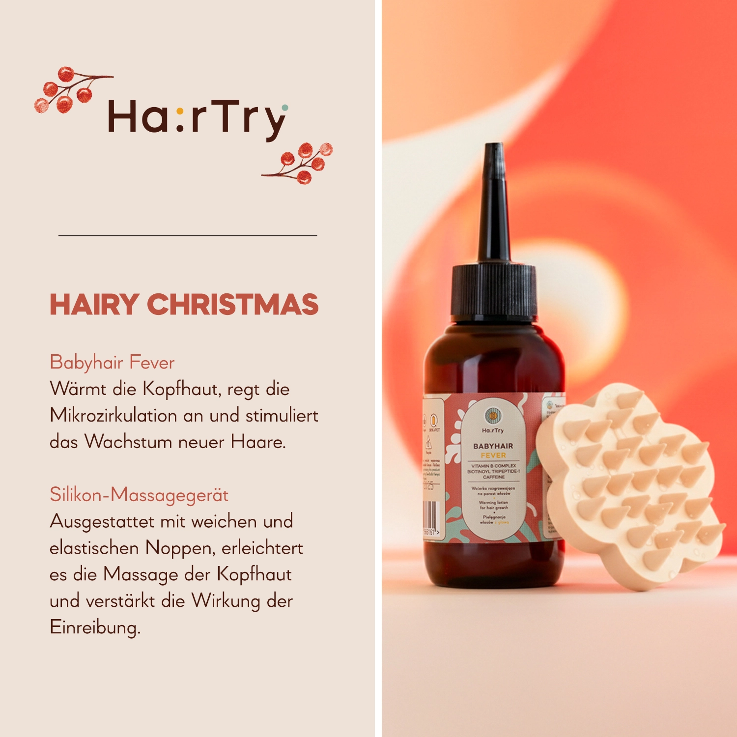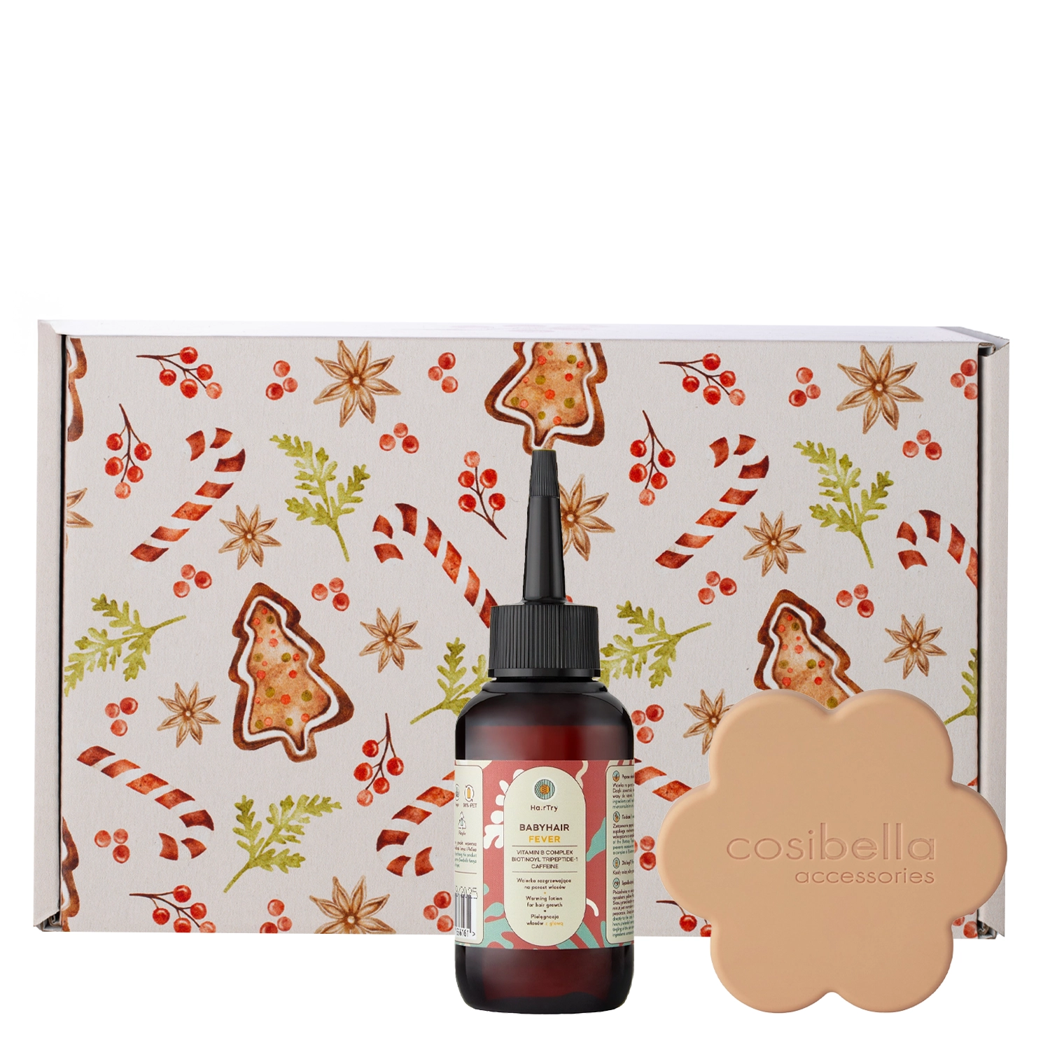 Set der Marke HairTry in einer dekorativen, weihnachtlichen Geschenkbox
