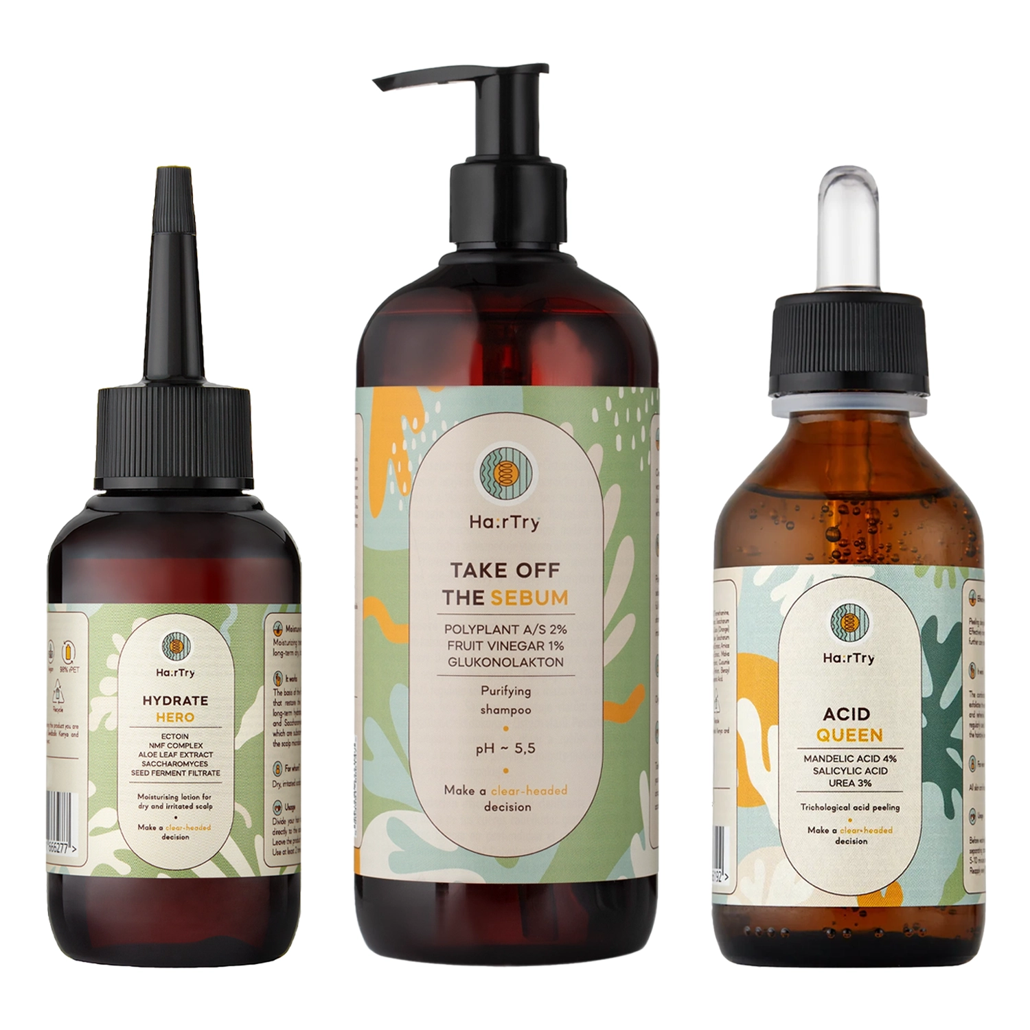 Set der Marke HairTry, entwickelt für fettige Kopfhaut
