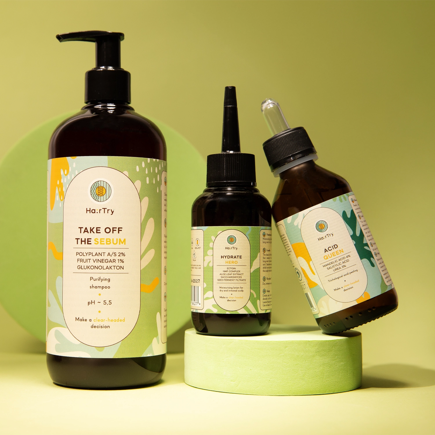 - Take Off The Sebum – ein reinigendes Shampoo, das die Frische verlängert. Entwickelt für fettige Kopfhaut und Haar ohne Volumen. Die Gel-Formel schäumt angenehm auf und dank passender Viskosität läuft es beim Auftragen nicht durch die Finger. Die verwendeten gemischten Tenside (anionisch, amphoter und nichtionisch) reinigen gründlich, ohne zu reizen oder auszutrocknen. Neben den Basisbestandteilen enthält das Shampoo pflegende Wirkstoffe wie 2% POLYPLANT A/S, 1% Fruchtessig und Gluconolacton. Bei regelmäßiger Anwendung hebt es das Haar am Ansatz an und verleiht ihm Volumen; das Haar fühlt sich locker und leicht an. Der frische, leicht parfümierte Duft macht die Anwendung angenehm.Kapazität: 500 ml.