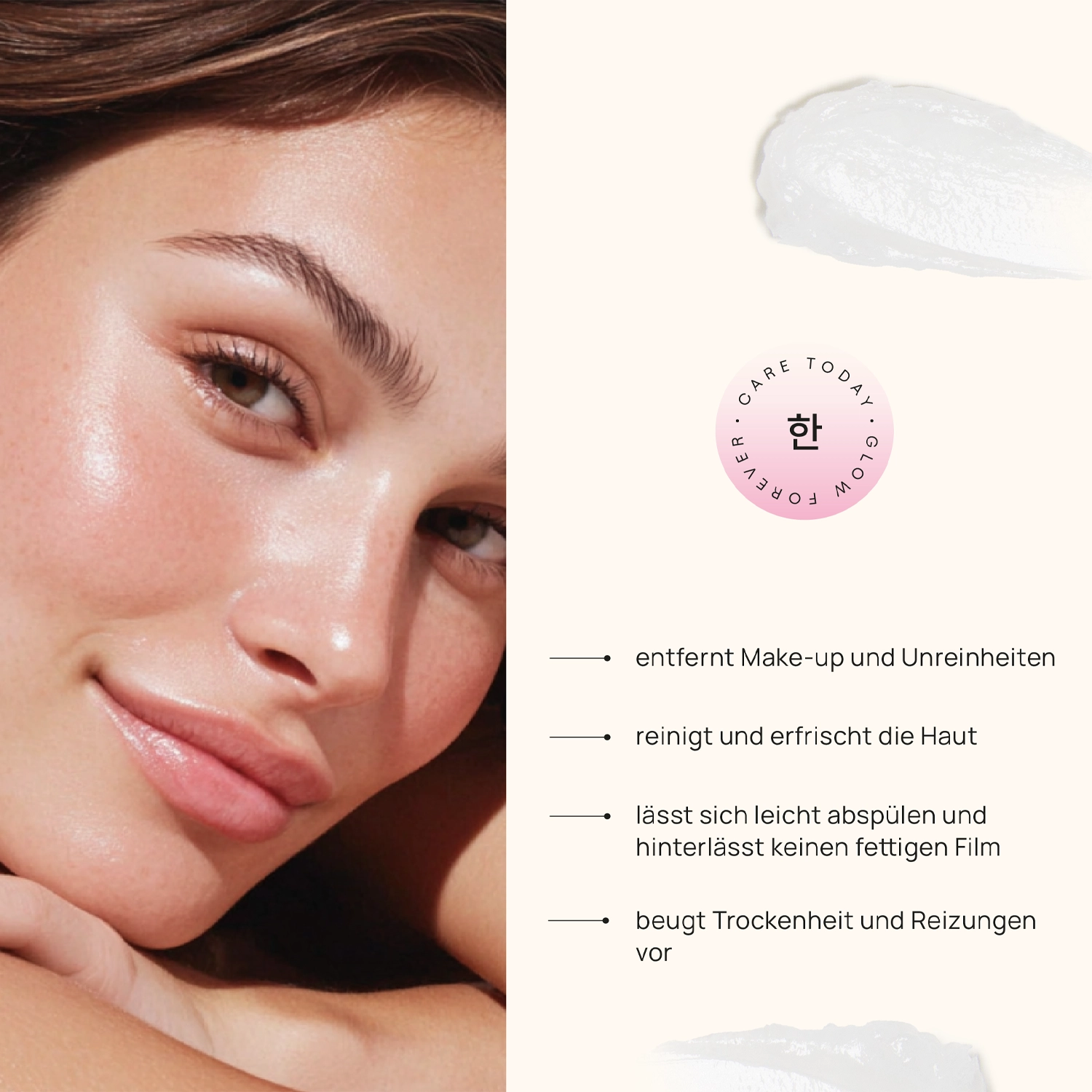 Anwendung: Geben Sie eine kleine Menge des Reinigungsmittels in die trockenen Hände, verteilen Sie es auf der Haut und massieren Sie es sanft für 1-2 Minuten ein. Gründlich mit lauwarmem Wasser abspülen und mit der zweiten Reinigungsstufe fortfahren.