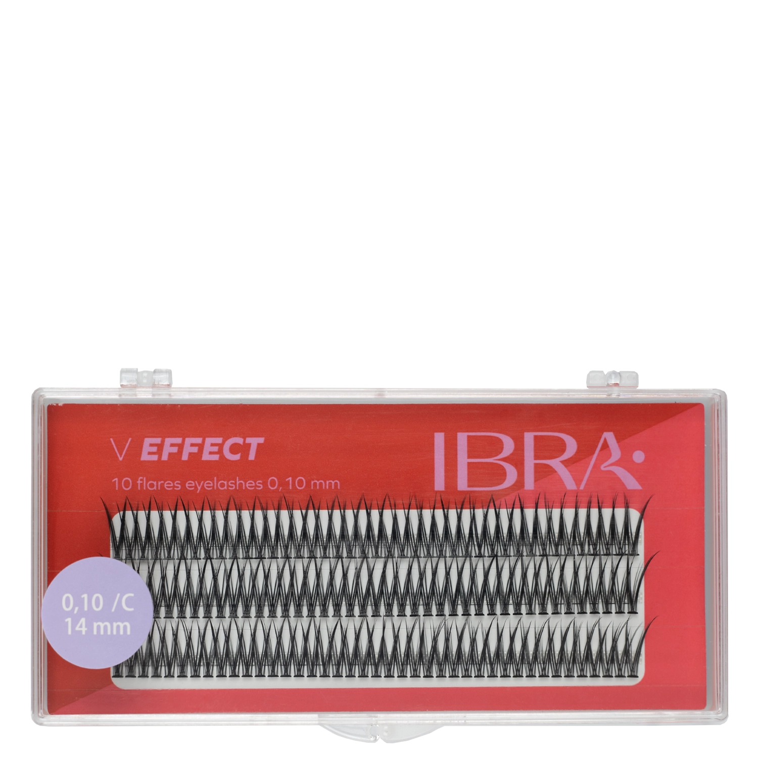 Ibra Makeup - V-Effekt-Büschel 0,10 - 14 mm - Wimpernbüschel aus der Reihe V-Effekt, die die Wimpern verlängern und das Auge öffnen. In einer ausgeprägten V-Form angeordnet, nimmt die Länge der Wimpern von den Außenseiten zur Mitte des Büschels hin allmählich ab, wodurch ein sehr moderner Effekt entsteht, der auch als "Fish Tail" oder "Schwalbe" bekannt ist. Aufgrund ihrer Leichtigkeit sind sie am Auge nicht zu erkennen.