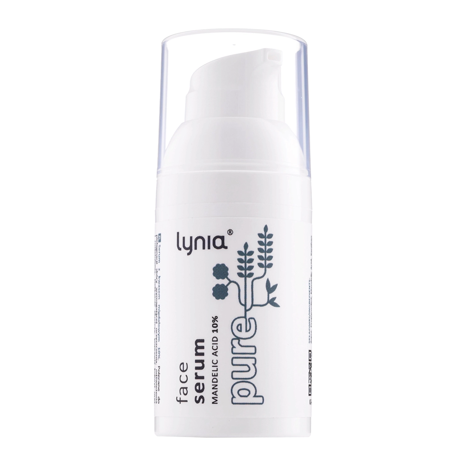 Lynia - Pure - Face Serum - Mandelic Acid - feuchtigkeitsspendendes Serum für die Gesichtspflege. Es enthält feuchtigkeitsspendendes Inulin und Kohlenhydrate: Glukose, Fruktose und Cellulose. Darüber hinaus enthält es 10% Mandelsäure, die in dieser Konzentration auch eine feuchtigkeitsspendende Wirkung hat. Darüber hinaus verhindert es die Vermehrung pathogener Bakterien auf der Gesichtsoberfläche. Bei regelmäßiger Anwendung können Sie die Wirkung von geglätteter Haut und sanftem Peeling erzielen.