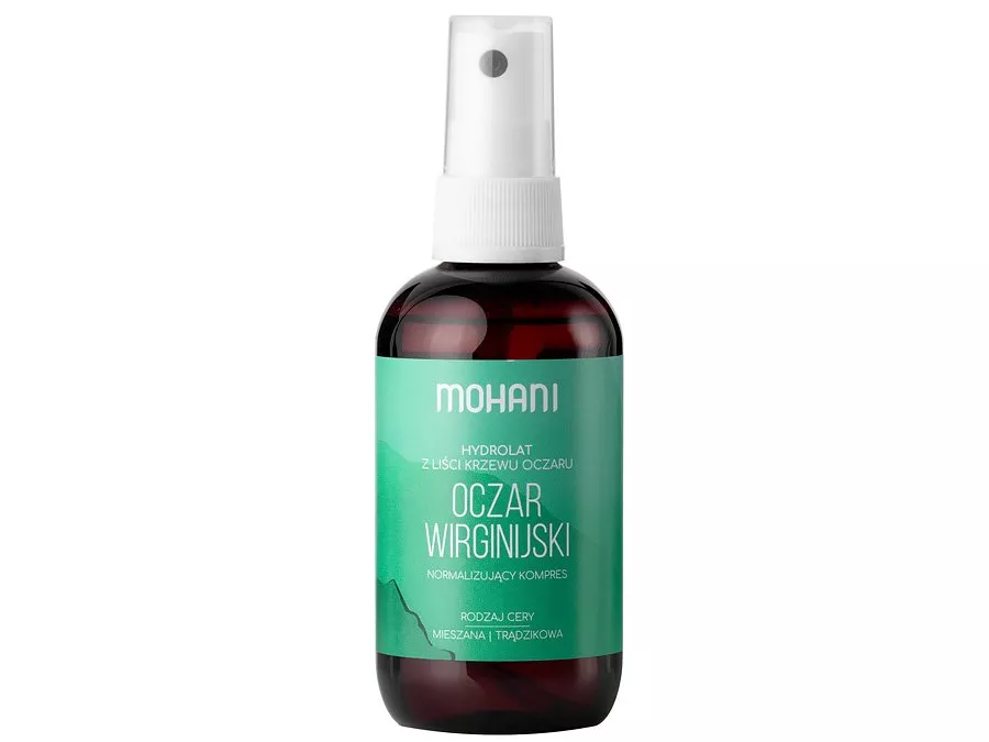 Mohani - Hamamelis Hydrolat - wirkt leicht entzündungshemmend, beruhigt die Haut und lindert Reizungen. Es beugt Hautunreinheiten vor, fördert die Heilung und Regeneration der Haut, erfrischt, reguliert die Talgdrüsen und reduziert die Talgproduktion. Sein pH-Wert liegt zwischen 4 und 6.