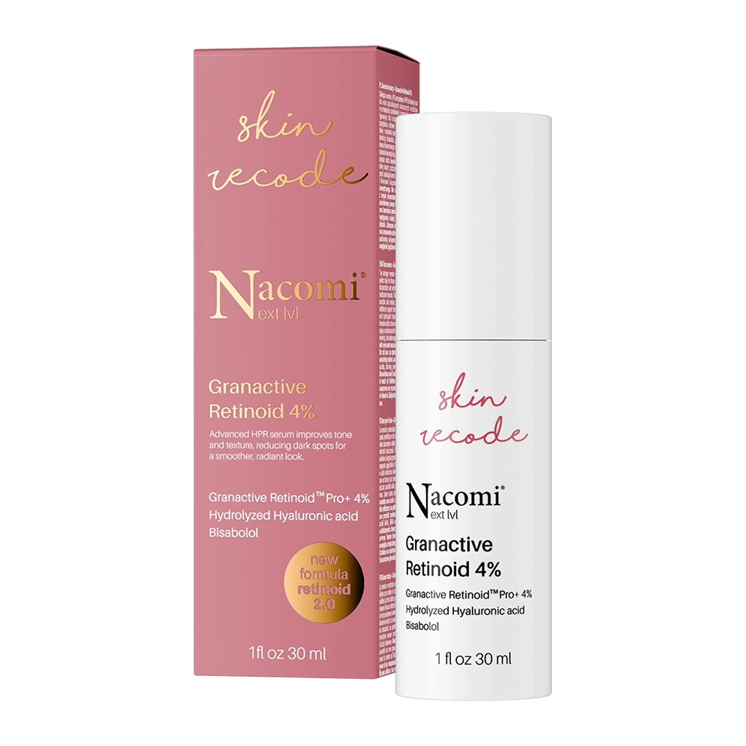 - Granactive Retinoid Komplex 4% – ein Komplex mit Retinsäureester, also einem Retinoid der neuen Generation, bietet hohe Wirksamkeit bei geringerer Reizungsgefahr, reduziert Unvollkommenheiten, glättet, stimuliert die Hauterneuerung, verringert die Sichtbarkeit von Verfärbungen und Falten,