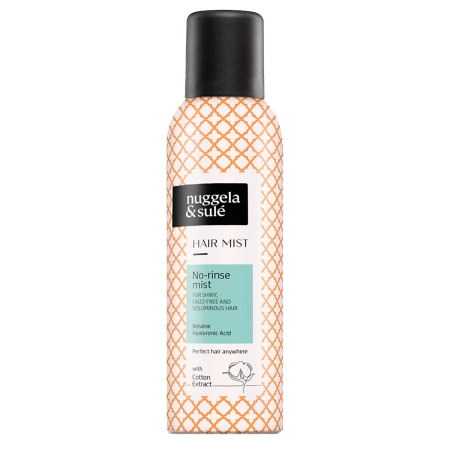 Nuggela & Sule - Hair Mist – ein Haarnebel. Das Produkt enthält Natriumhyaluronat und Betain. Es sorgt für mehr Feuchtigkeit im Inneren der Haarfaser und verleiht dem Haar zudem Geschmeidigkeit und gewünschten Glanz. Der Zusatz von Baumwoll-Extrakt glättet widerspenstige Strähnen und reduziert Frizz, während das Haar gleichzeitig glatt und elastisch bleibt. Der Nebel ist für die Pflege aller Haartypen geeignet, insbesondere für trockenes oder raues Haar.