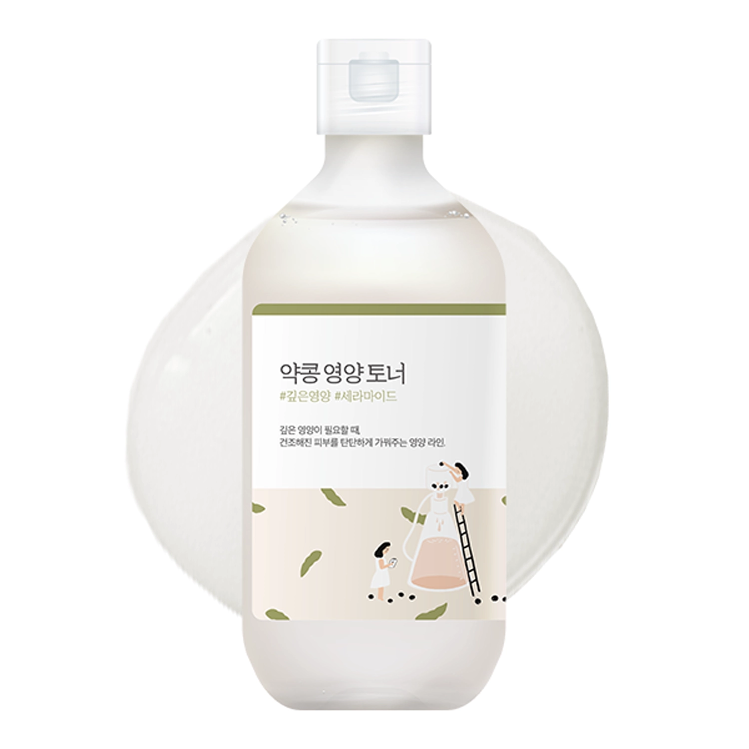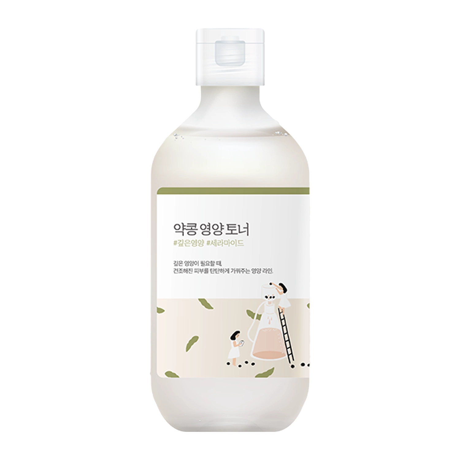 Round Lab - Soybean Nourishing Toner - ein Gesichtswasser mit einer milchigen, wässrigen Textur, die sehr angenehm auf der Haut ist. Es enthält schwarzen Sojaextrakt mit Anti-Aging-Eigenschaften sowie Adenosin zur Glättung von Fältchen und Ceramid NP zur Wiederherstellung der Lipidbarriere der Haut. Der Zusatz von Natriumhyaluronat sorgt dafür, dass die Epidermis mit Feuchtigkeit versorgt wird. Das Produkt ist parfümfrei und für Veganer geeignet.