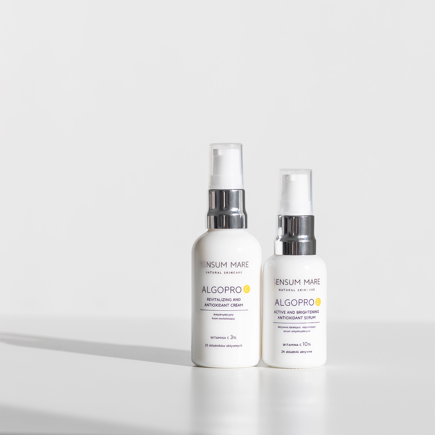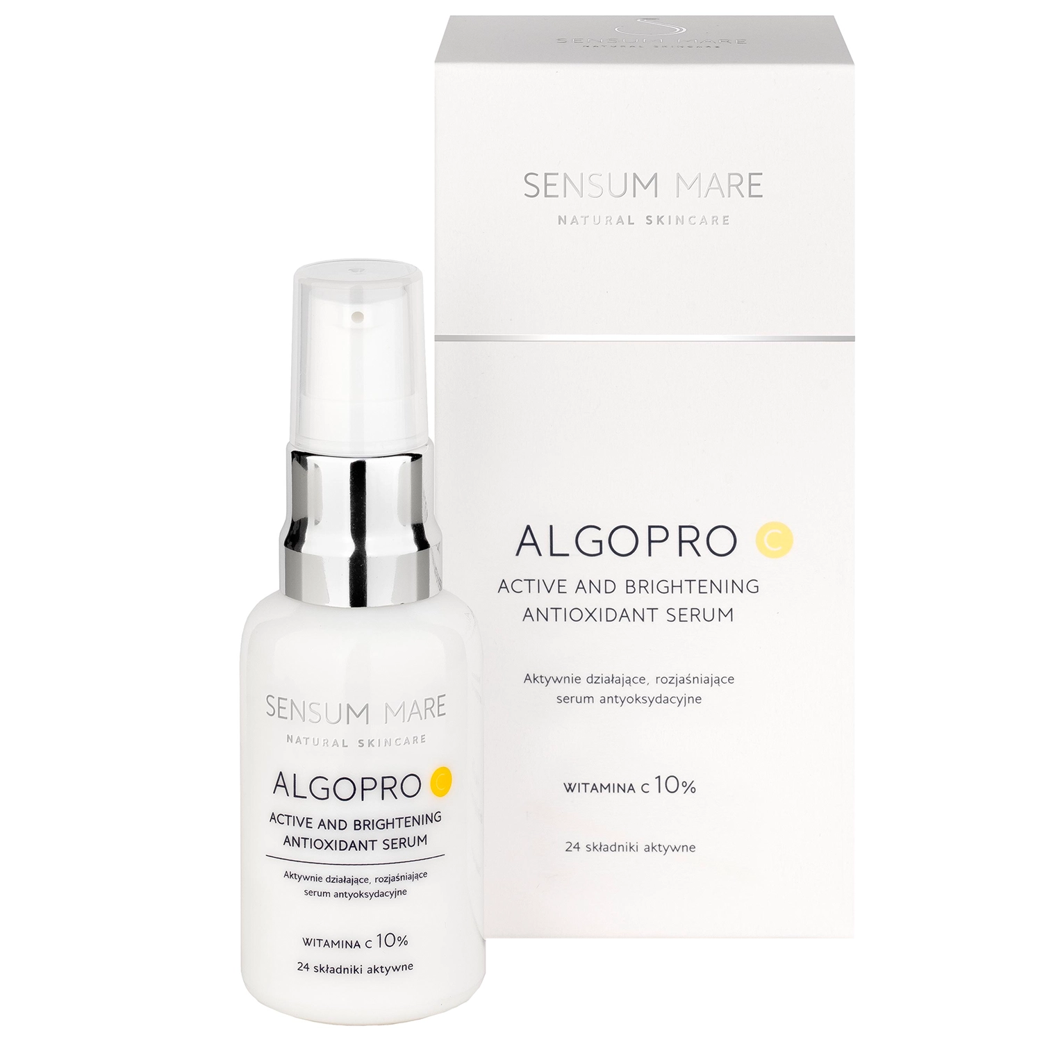 Sensum Mare - Algopro C - Aktiv wirkendes, aufhellendes Antioxidantien-Serum mit Vitamin C 10% - ein Gesichtsserum mit Vitamin C in zwei Formen, das Verfärbungen wirksam aufhellt, dadurch den Hautton ausgleicht und einen Anti-Aging-Effekt hat. Darüber hinaus bekämpft das in der Formulierung enthaltene Niacinamid Hautunreinheiten, Luminescin macht den Teint strahlend und geschmeidig und ein Komplex aus 5 Meeresalgen spendet Feuchtigkeit. Das Produkt besteht zu 91,87 % aus natürlich gewonnenen Inhaltsstoffen und ist für Veganer geeignet.