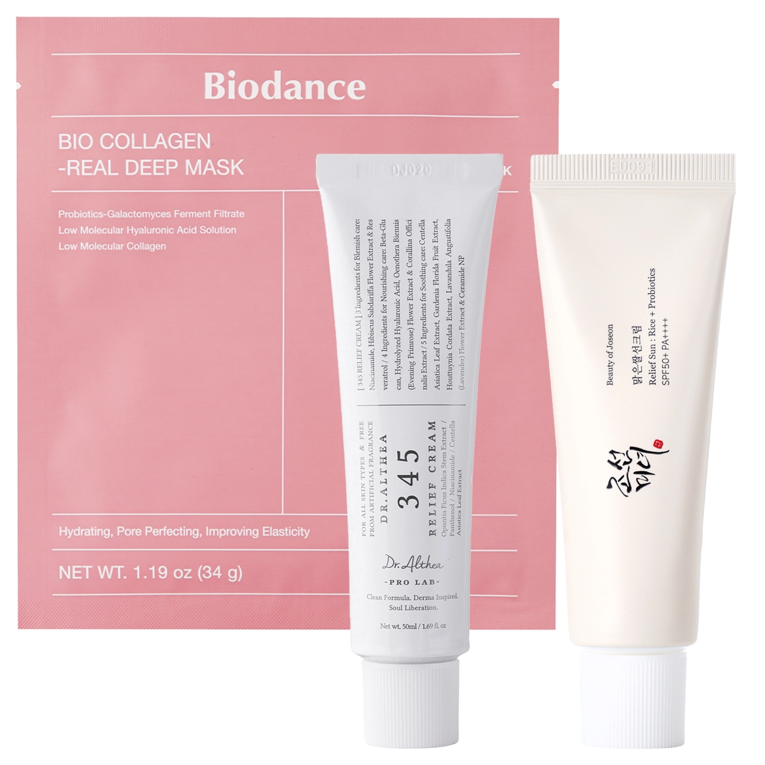 - Beauty of Joseon - Relief Sun Rice Probiotics - LSF50+/PA++++ – eine Gesichtscreme, die die Haut dank chemischer Filter vor schädlicher UVA- und UVB-Strahlung schützt. Sie zeichnet sich durch eine leichte Textur aus, die nicht klebt und keinen Weißstich hinterlässt. Die Creme zieht schnell ein, duftet angenehm und sorgt für ein seidig-leuchtendes Finish mit „Glass Skin“-Effekt. Das Produkt ist vegan und basiert auf Inhaltsstoffen natürlichen Ursprungs.