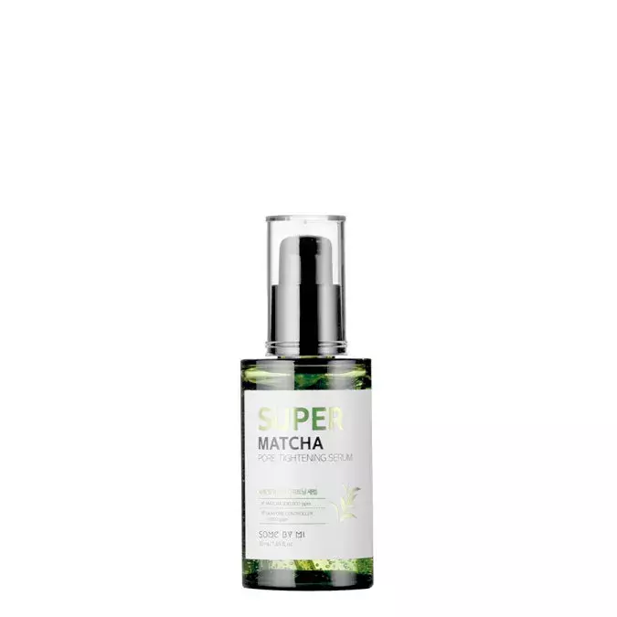 Some By Mi - Super Matcha Pore Tightening Serum - Serum auf Basis von Grüntee-Extrakt, das antioxidativ, tonisierend und beruhigend wirkt. Der Zusatz von Niacinamid stärkt die Schutzbarriere der Haut, hat eine aufhellende Wirkung und verringert die Ausgänge der Talgdrüsen. Die Aminosäure - Arginin - wirkt feuchtigkeitsspendend, während Lactobionsäure die Epidermis glättet und erweicht, die Zellerneuerung reguliert und Reizungen lindert. Madecassosid aus Indischem Wassernabel hat entzündungshemmende, regenerierende und feuchtigkeitsspendende Eigenschaften. Der Extrakt aus weißer Weidenrinde hat entzündungshemmende, reinigende und peelende Wirkung.