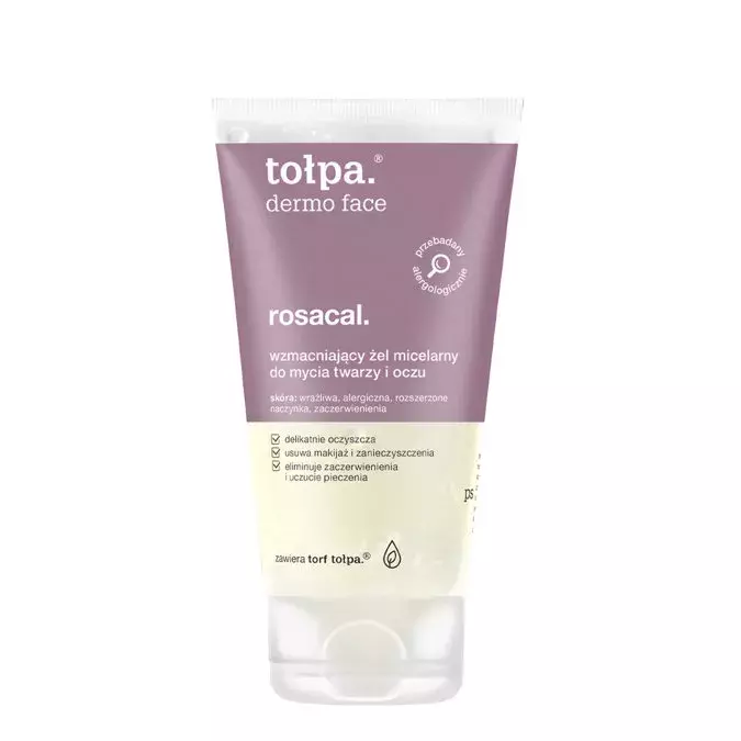 Tolpa - Dermo Face Rosacal - Stärkendes Mizellen-Gel für Gesicht und Augenreinigung - ein sanftes Gel zur Entfernung von Gesichts- und Augen-Make-up. Reinigt die Haut mit milden Reinigungssubstanzen. Zusätzlich enthält es einen wertvollen Extrakt aus Torf - auch Moor genannt -, der entgiftend wirkt, den Reinigungsprozess unterstützt und die Haut erfrischt. Japanischer Perlenblütenextrakt hingegen unterstützt die Pflege der Gefäßhaut; er wirkt sich positiv auf den Zustand der Blutgefäße aus und fördert die Reduzierung von Rötungen, die durch das Platzen kleiner Gefäße entstehen.